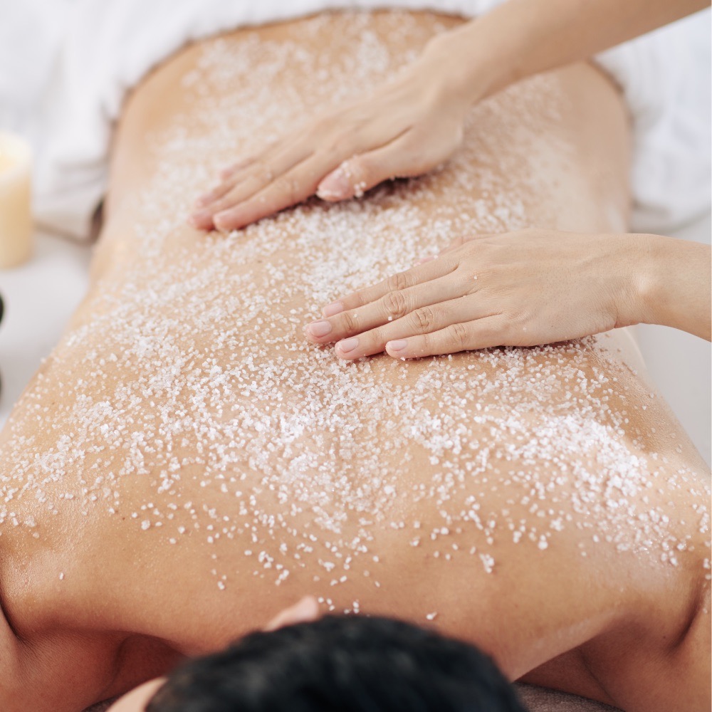 Ξεκινάμε με απαλή απολέπιση σώματος, που απομακρύνει τα νεκρά κύτταρα και ενεργοποιεί την κυτταρική ανανέωση, αφήνοντας την επιδερμίδα φωτεινή, λεία και καθαρή.